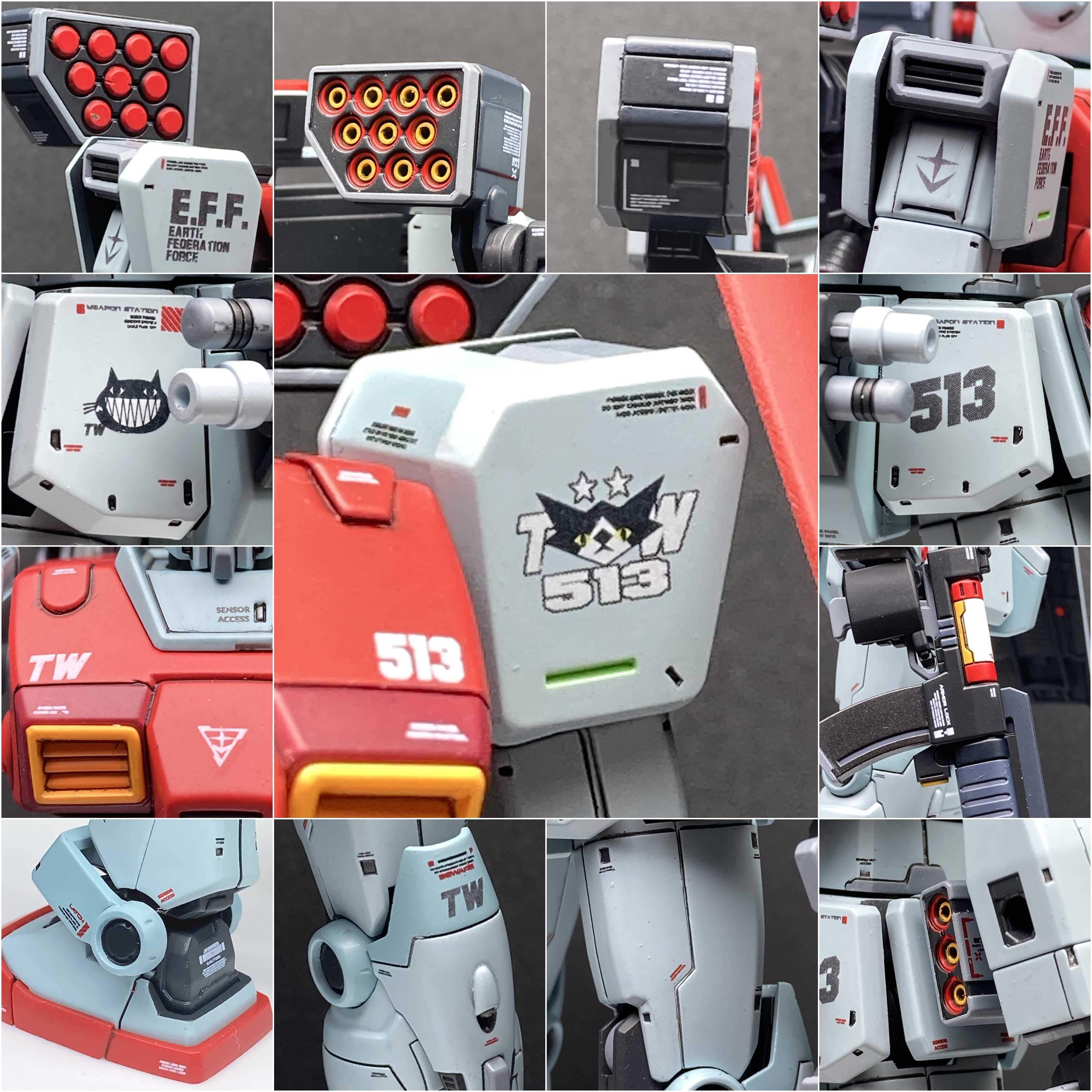 메인이 되는 전용 엠블렘과 범용으로 사용하고 있는 코션을 조합해서 데칼 패턴을 적용했습니다.