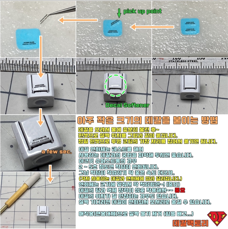 작은 크기의 코션 데칼을 많이 사용하기 때문에 작업이 까다로울 수 있으나 아래의 방법대로 하면 조금은 쉽게 할 수 있습니다.