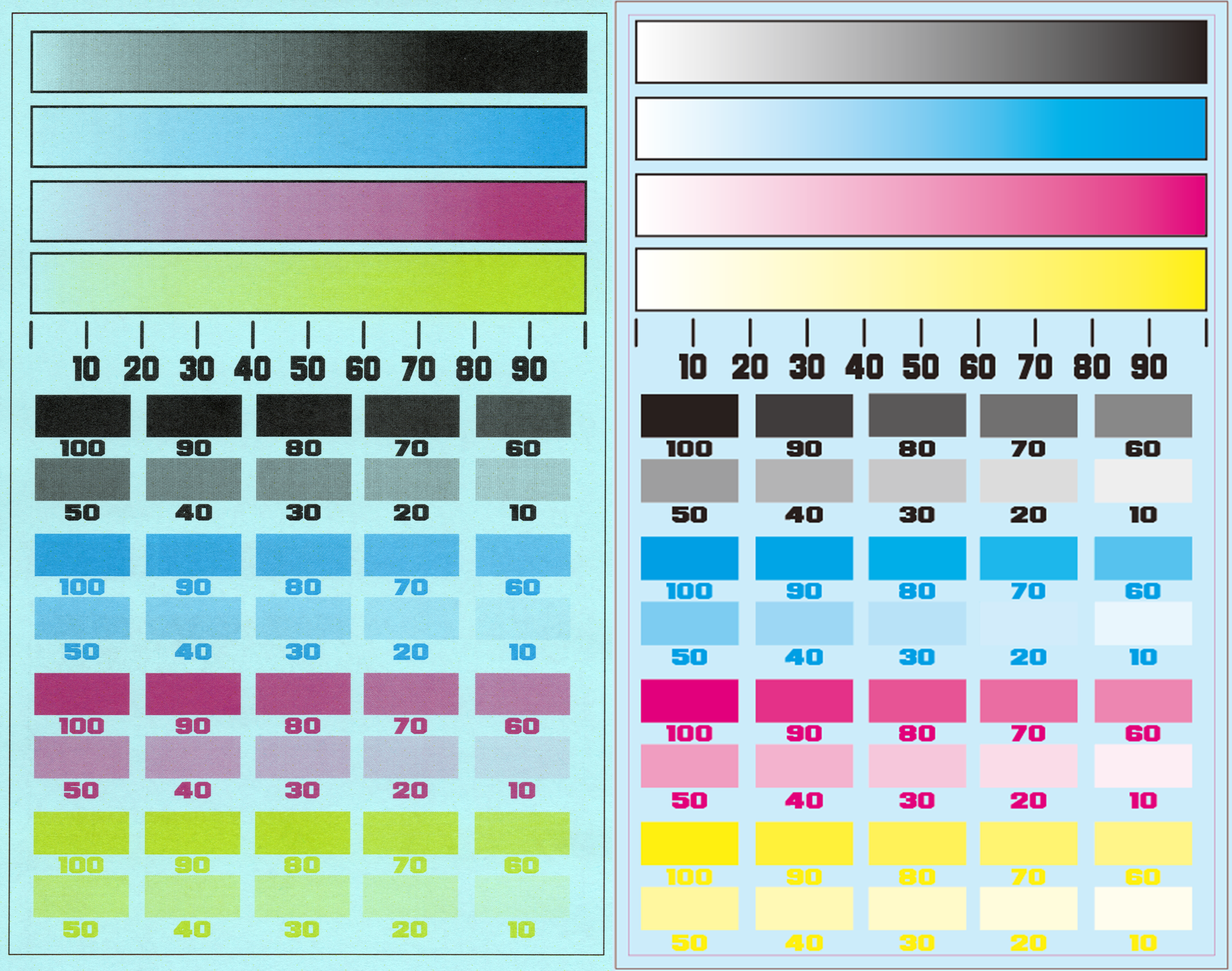 이건 액상으로 색이 섞이는 것이 아니라 토너 가루가 격자 모양으로 깔리면서 구멍의 크기로 농도를 조절 하는 방식이라서 나오는 현상입니다. (제가 레이저 프린터 출력에서 싫어하는 단점이쥬.)