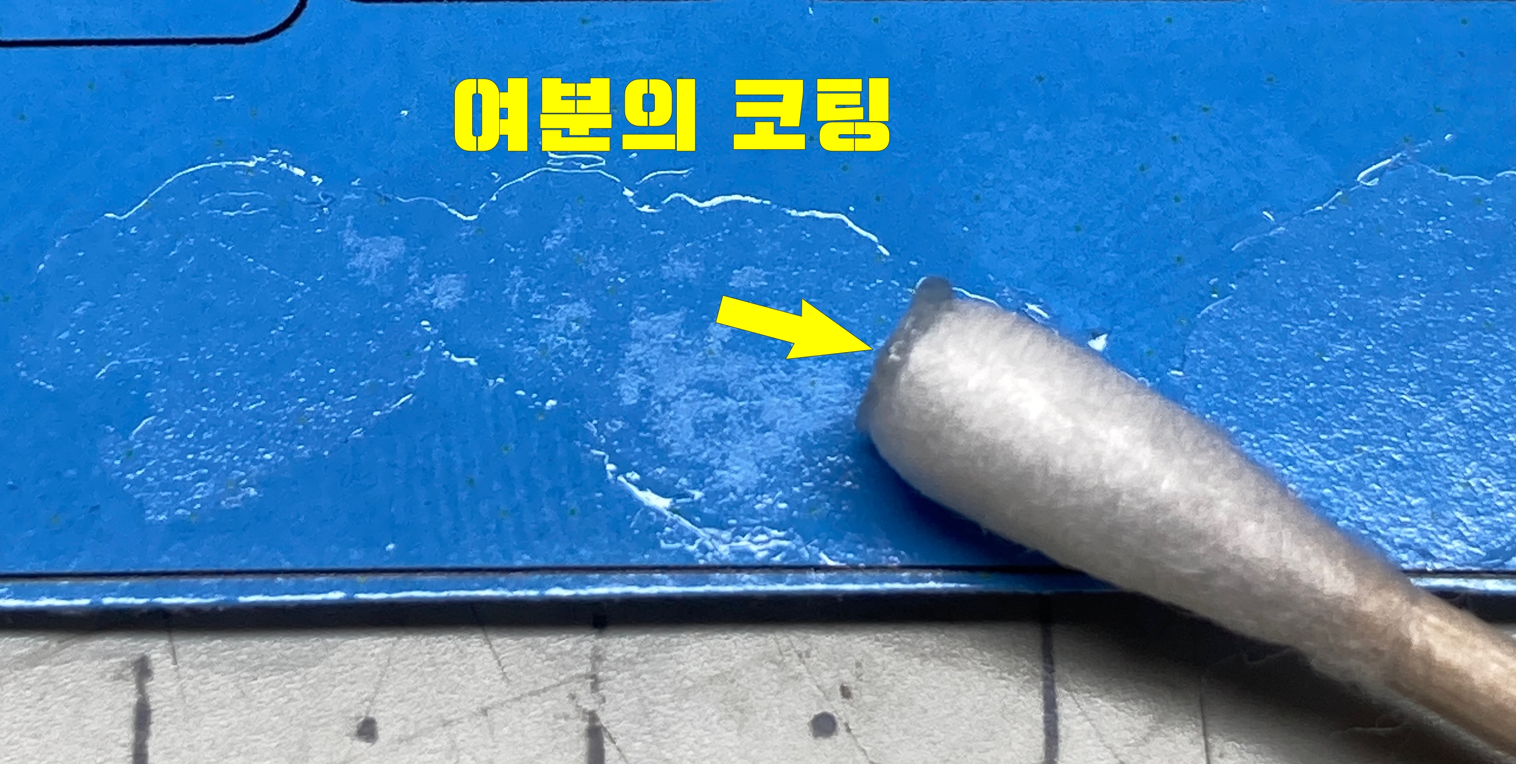 코팅을 제거한 표면을 광내는 사포 (#1000방 이상)로 가볍게 센딩하는 것도 좋은 방법입니다.